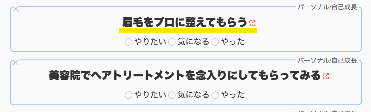 順番は場所の固定が可能です。(関連するやりたいことリストの近くに配置できます)